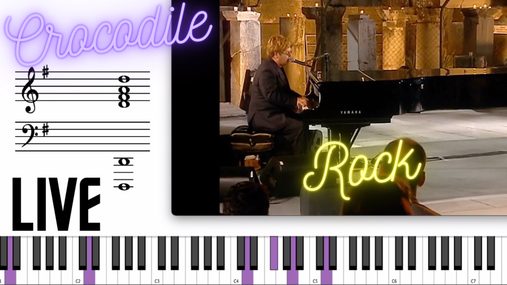If you want to learn how to play Crocodile Rock just like Elton John then this midi file is for YOU! This midi file is a transcription from Elton’s acclaimed solo performance from The Great Amphitheater at Ephesus in 2001. Crocodile Rock is from the 1973 album Don’t Shoot Me I’m Only The Piano Player and Crocodile Rock became Elton’s first number one single in the U.S.. If you want to be the life of the party then start playing Crocodile Rock and everyone will have a smile on their face by the first verse. In the amiable key of G Crocodile Rock is more rhythmic in nature but has a catchy 50’s sound you won’t be able to stop humming.